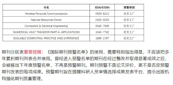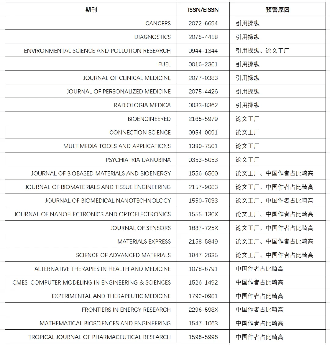 除了分区调整,2025年中科院预警名单同样备受关心。2024年的预警名单初次公开了部门期刊的“预警缘由”,次要聚焦“中国做者占比畸高”“援用”。而2025年的预警名单中,仅有“论文工场”这一个预警缘由。