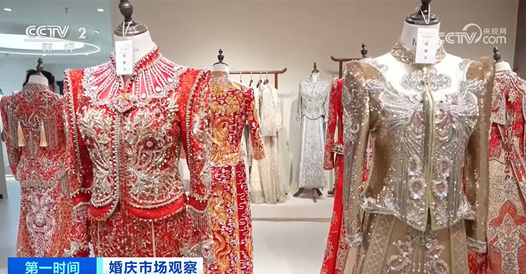 婚纱店同样生意火热。正在江苏淮安的这家婚纱号衣店,不少顾客正正在征询。新中式婚服将保守元素取现代时髦相融合,格式上既有改良的旗袍、也有融合西式剪裁的中式号衣,越来越遭到新人的青睐。消费市场热销,上逛出产企业订单不竭。做为营制典礼感的最强空气组,上百个颜色、20多种网纱面料正正在江苏南通的工场内不竭织出。每年“五一”假期前,企业城市接到大量订单,加班加点出产。个性化婚礼场景定制也让布景道具出产企业满负荷运转。带马达安拆的灵动蝴蝶、光带粉饰的花艺摆件正正在拆卸下线,这家江苏盱眙的布景道具企业从打个性化定制,长三角地域用户当全国单,第二天即可收货。取此同时,跟着国内越来越多新人选择前去东南亚举办婚礼,发往印尼巴厘岛、泰国普吉岛等地的布景道具订单也持续增加。