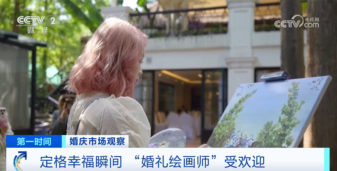 户外草坪婚礼的火热同样催生了一个新职业婚礼现场绘画师。正在上海武定西的一个婚礼现场,亲友老友正取新人互动祝愿。而场地角落,绘画师反面对画板,挥舞手中的画笔,用油画的形式定格新人的幸福霎时。一幅婚礼画做完成需要48小时,为了能当天将画做交付给新人,她需要提前几个小时到现场先绘画布景。婚礼样态愈加多样,婚号衣务愈加个性化,跟着“甜美经济”持续升温,婚庆用品市场也火热起来。“五一”期间,喜糖、婚纱等婚号衣务及用品门店人头攒动,出产企业也忙碌起来。