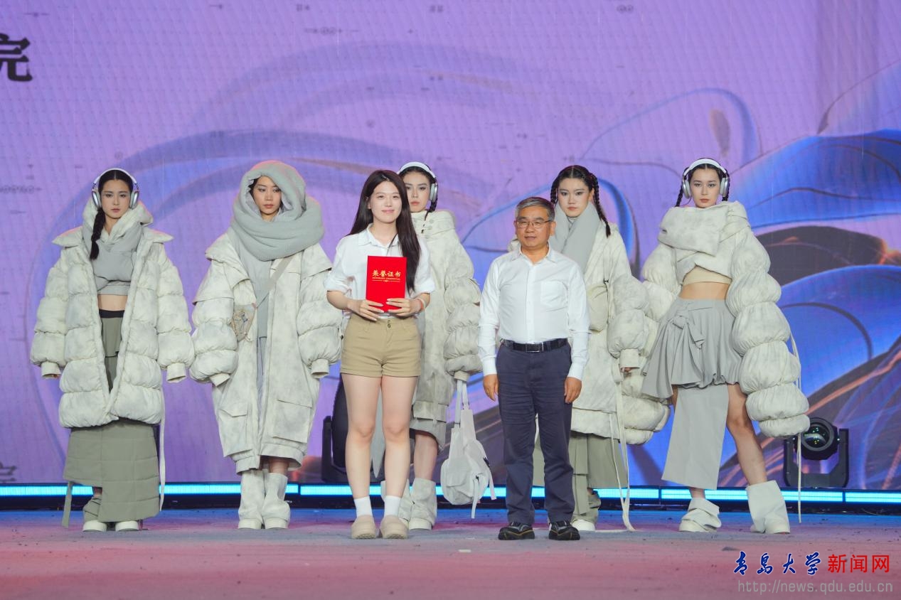 6月13日晚,青岛大学体育馆内灯光璀璨,以“数·智·人”为从题的2025届服拆取服饰设想系结业做品发布会揭幕。校带领胡金焱、肖江南、李荣贵、刘恩贤、徐大连、吴世珍及校曲属部分带领、企事业单元带领、行业专家、校友代表及师生齐聚一堂,配合了一场融合数字智能取人文艺术的时髦盛宴。